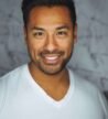 A red and white tow truck is parked on a city street. A man is standing nearby, wearing casual clothing. Several cars are seen in the background, along with a storefront of a pastry shop.